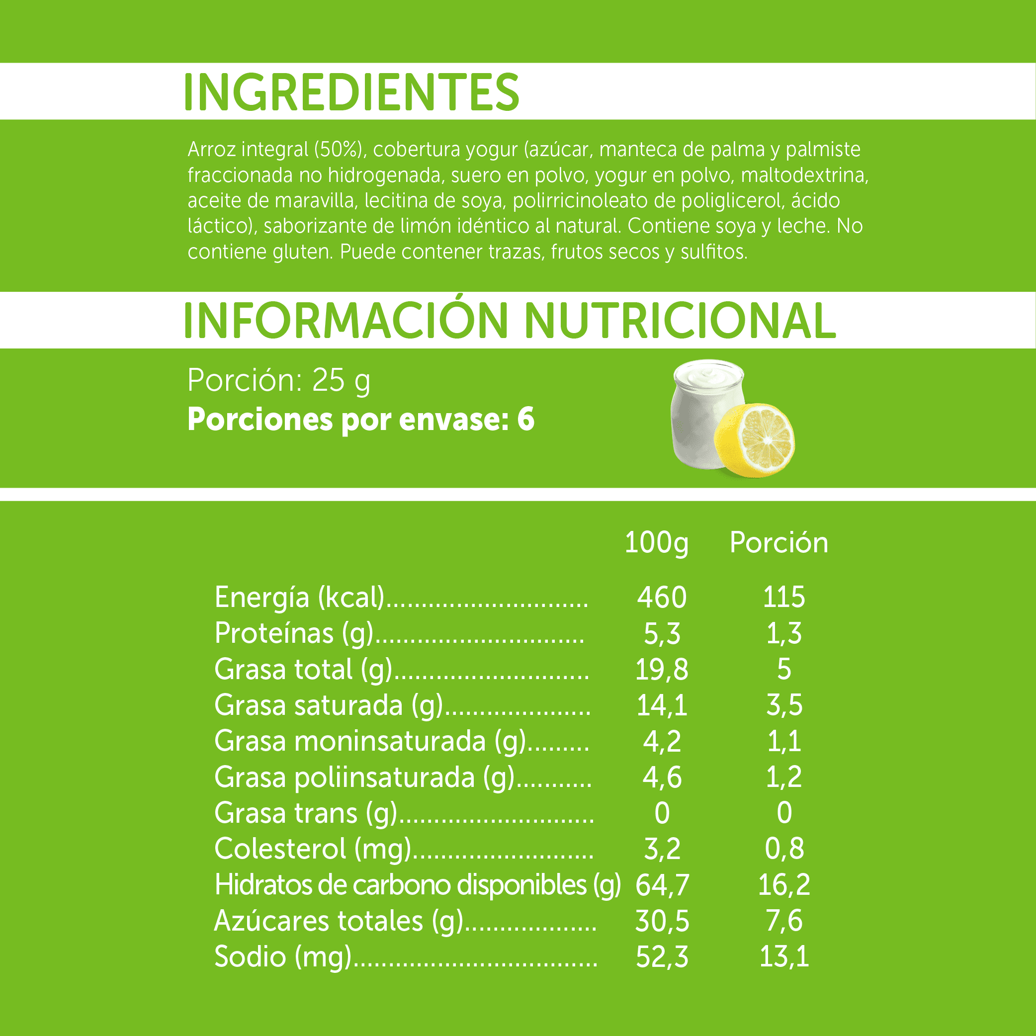 Deliciosas galletitas de arroz integral con cobertura sabor yogurt limón.